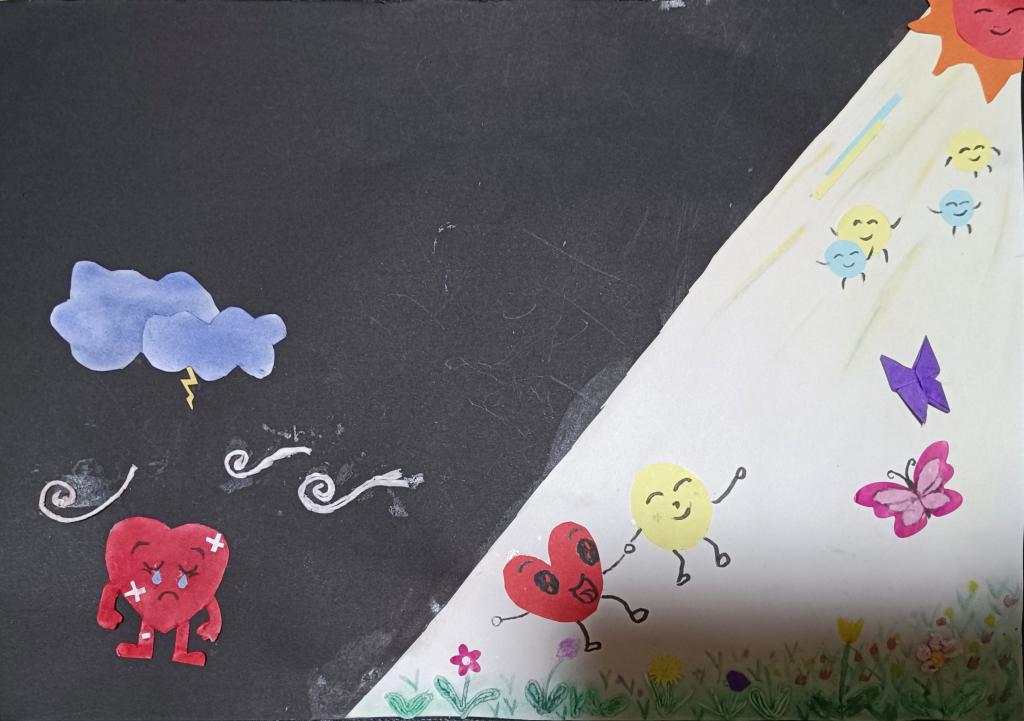 同学们拿起画笔,借助各种绘画材料,深切地感受内心的情绪,发挥动手能力,放飞想象力,将创意与思考结合进行设计与构思,用鲜艳的色彩和图案绘制出许多生动的作品,让原本看不见摸不着的心理活动在纸上“活”了起来。让我们一起来欣赏同学们的作品吧!