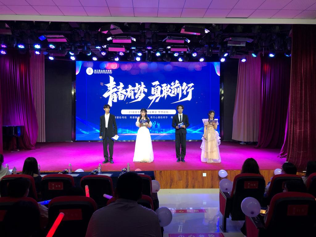 5月25日晚7时,2021级音乐表演一班“青春有梦,勇敢前行”毕业晚会汇演在艺术演播厅隆重举行。十大买球官方网站领导、教师代表和学生一同观看了汇演。