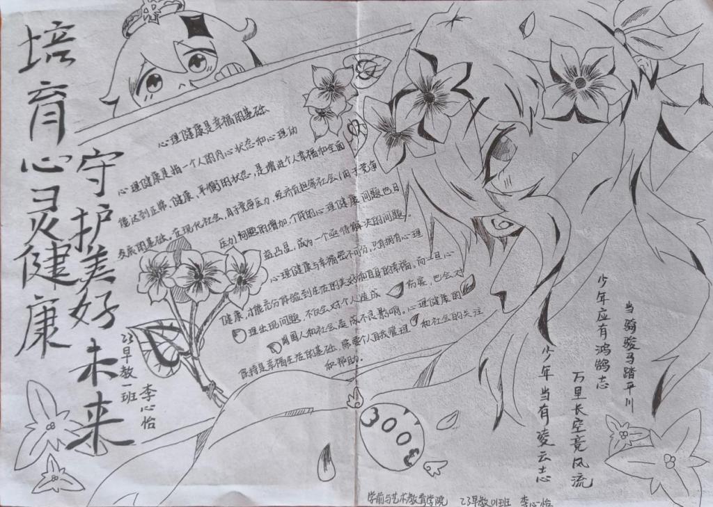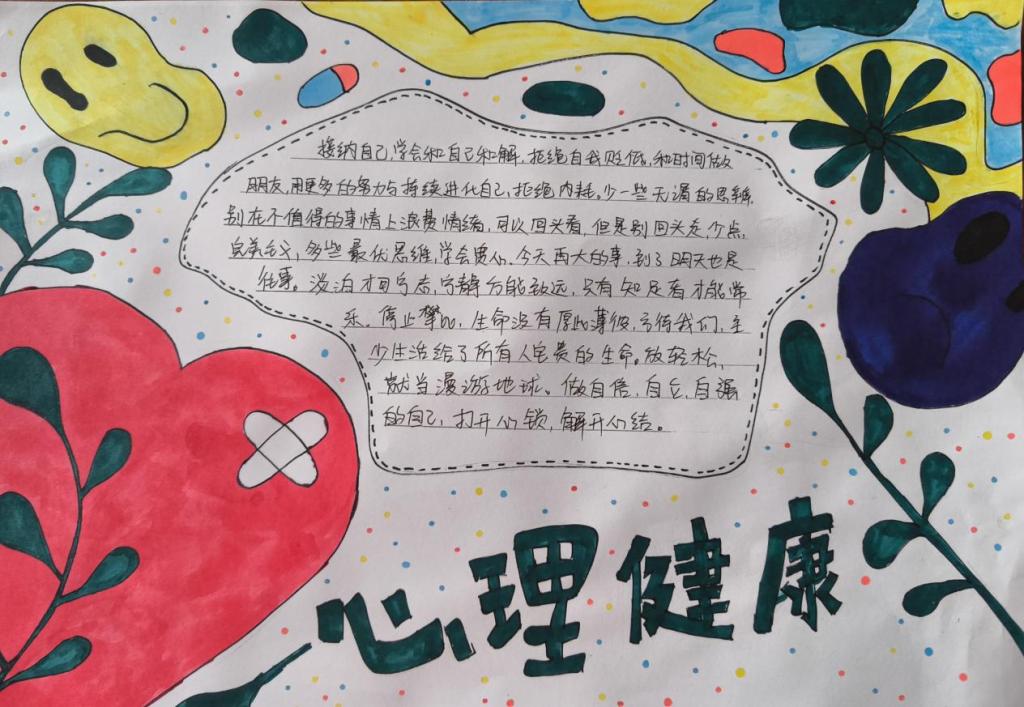 同学们根据活动主题,认真思考,发挥特长,用五彩斑斓的画笔描绘出自己对心理健康知识的理解,传递了有关心理健康的知识。一幅幅图文并茂、内涵丰富的手抄报,多角度展示了同学们的心灵世界。
