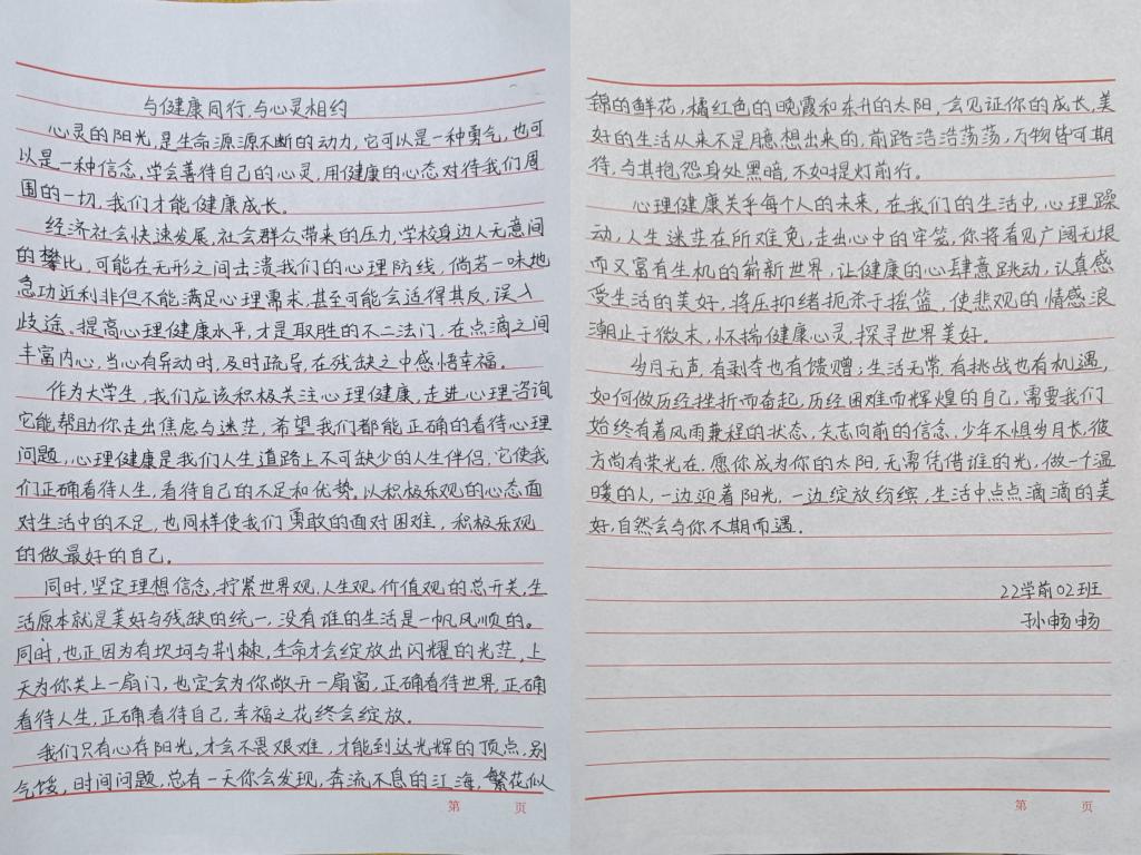 同学们踊跃参与,积极投稿,征文作品内容积极向上、文字朴素生动、立足实际,切实表述对大学生心理健康的理解。展现出大学生神采奕奕、意气风发的良好精神风貌。
