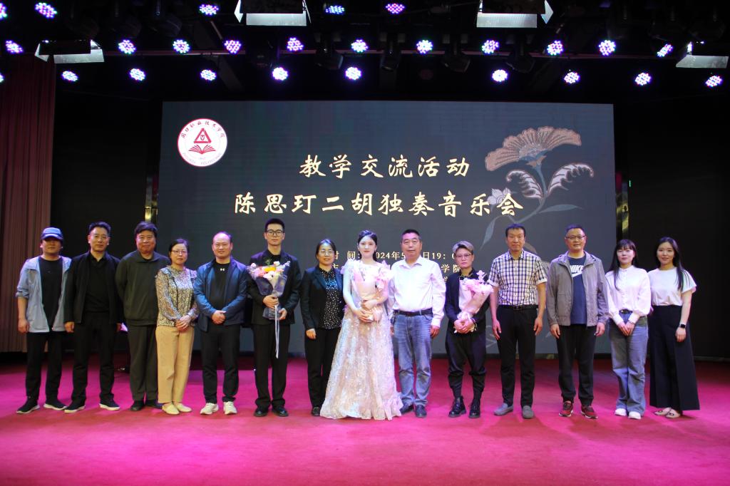 5月8日晚,中央音乐学院民乐系二胡专业学生陈思玎前来买球赛十大平台开展教学交流活动暨二胡独奏音乐会。周口师范学院闵惠芬艺术研究中心主任张丽教授,商水县音乐家协会副主席、周口民族管弦乐团团长李耀斌,买球赛十大平台招生就业处处长许建国、十大买球官方网站党总支书记王春生、院长高岐奎出席音乐会现场。十大买球官方网站师生和社会音乐爱好者们欢聚在此,共同聆听这场音乐盛宴。