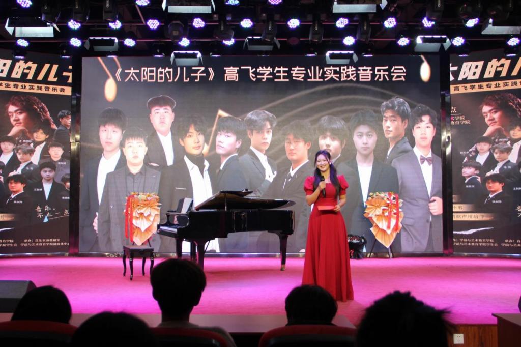 12月4日晚,“太阳的儿子”——高飞学生专业实践音乐会在艺术演播厅成功举办。本场音乐会由十大买球官方网站音乐表演教研室主办,我院声乐专任教师高飞指导,马希宝老师、赵俊辉和李逸思同学担任艺术指导。特邀周口市人力资源和社会保障局退休干部陈志伟,周口师范学院体育学院原党委书记、教授、退休干部李志杰作为串场嘉宾,与学生共同在音乐会上放歌,以歌传情、绽放风采。