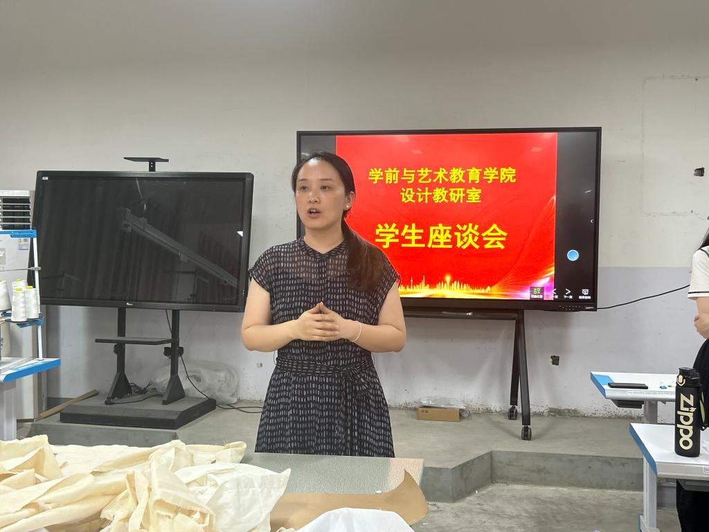 6月13日晚自习,在4434和工艺实训室召开本学期设计教研室视传、服装、纺织专业学生的座谈会。设计教研室主任董瑞主持会议,就此次座谈会目的进行了说明,会议目的是了解学生在专业学习上对任课教师的教学评价,以及在学习上的需求和存在的问题。
