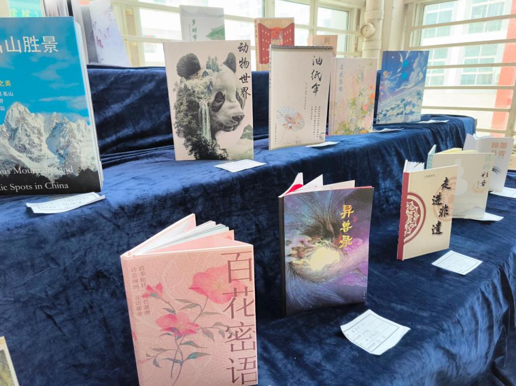 本次展览共展出60多件书籍设计作品,每件都凝聚着学生们的心血与智慧。作品风格多样,从古典到现代,从简约到繁复。学生们通过独特的视角和创意手法,巧妙地将文字、图像、色彩与材质结合,赋予书籍新的生命力和艺术价值。无论是封面的视觉冲击,还是内页版式的布局,都体现了学生们对书籍设计的深刻理解和精湛技艺。在老师的指导下,学生们深入调研书籍主题,挖掘文化内涵,并结合现代设计理念,创作出既符合时代审美又不失文化底蕴的作品。其中,不少作品融入了“非物质文化遗产”元素,通过设计语言讲述中国故事,传递文化自信。