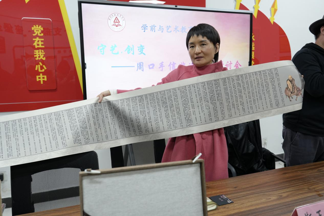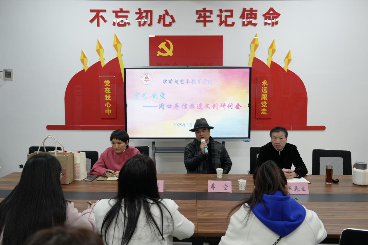 为传承中华优秀传统文化,促进非遗传承与创新,3月14日上午,十大买球官方网站在四楼党员活动室召开手信非遗文创研讨会。非空设计(深圳)有限公司创始人、国家知名设计师非空,周口昌建创业商会会长靳玉洁,视觉传达设计专业师生参加会议。会议由学院党总支书记王春生主持。