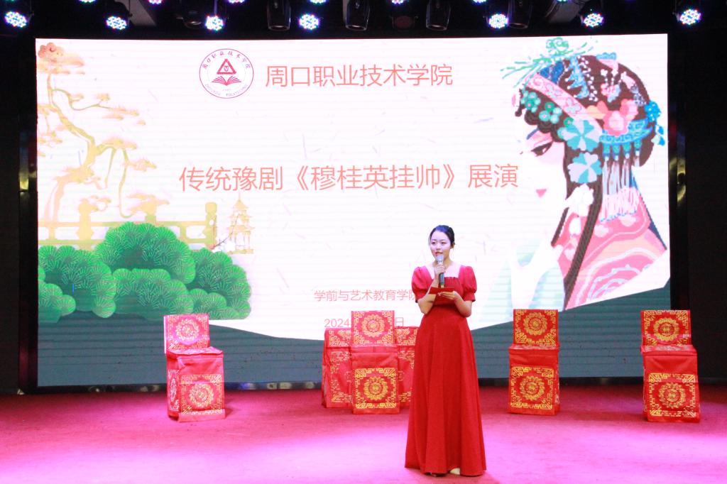 本次演出共有五幕,讲述了五十三岁的穆桂英辞朝之后得知国家危难挂帅出征的故事。剧中演员唱腔圆润、扮相俊美,剧情张弛有度,整场表演精致细腻,呈现了一场豫剧的盛宴。演出剧情高潮迭起,深深感染着在座师生,使广大师生近距离感受到了我国传统戏曲的魅力。