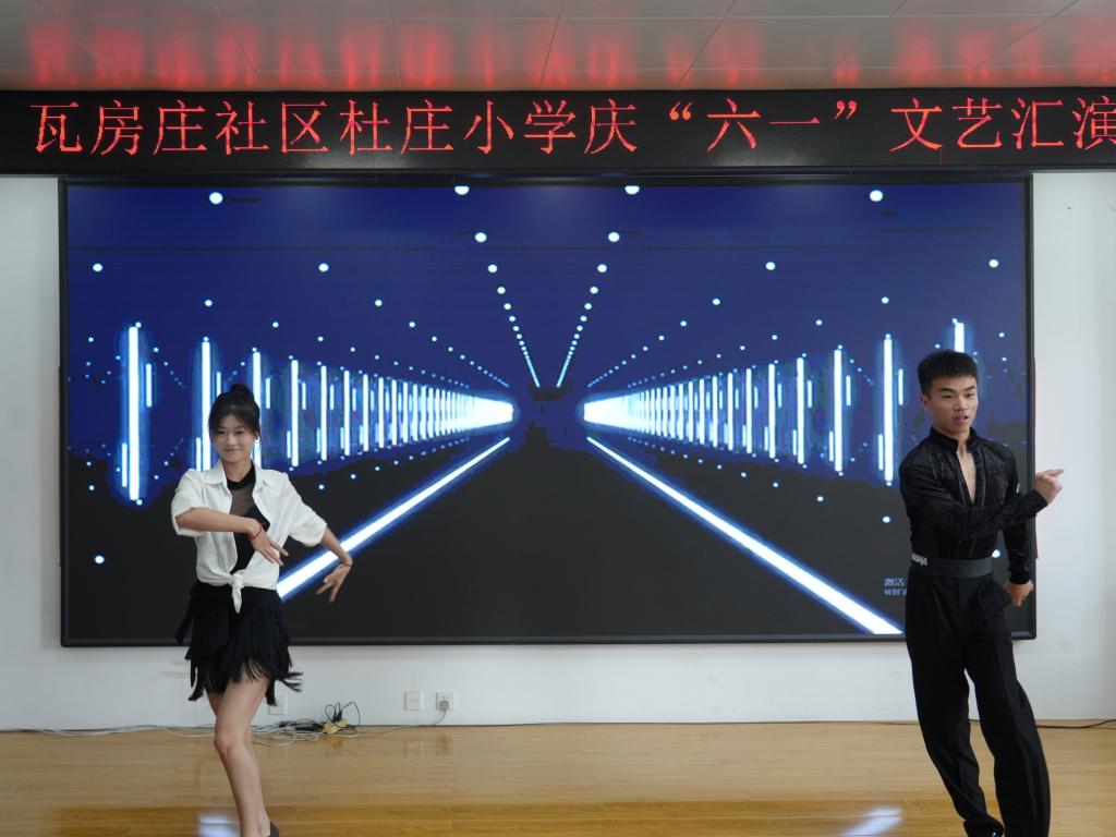 热情奔放的双人拉丁舞点燃现场气氛;激昂豪迈的男声独唱《点燃银河尽头的篝火》激发无限想象;温暖治愈的女声独唱《明天会更好》传递美好期许。戏曲环节同样引人入胜,豫剧身段《折扇》尽显优雅魅力;道情折子戏《王金豆借粮》展现地方风情。最后,悠扬的古筝独奏《大鱼》将孩子们带入宁静的音乐世界。